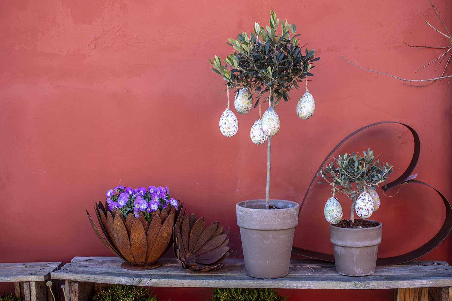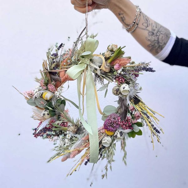 Preparare l’albero pasquale diventa anche nelle case italiane una tradizione sempre più apprezzata, un’abitutine di benessere che da il buon umore a tutta la famiglia, importante infatti coinvolgere i bambini se vivono con noi. Fuori dalla porta, tolta ormai la ghirlanda di abete natalizia, rimane un incolmabile vuoto, presto fatto! Basta sostituire il decoro con una ghirlanda di fiori secchi, morbide piume e ovetti di quaglia, spazio al colore. Infine un centrotavola adatto non può mancare, fatto di rametti intrecciati come fosse un piccolo nido di passeri pronto ad accogliere nuove vite, riempito di ranuncoli, narcisi e tulipani.