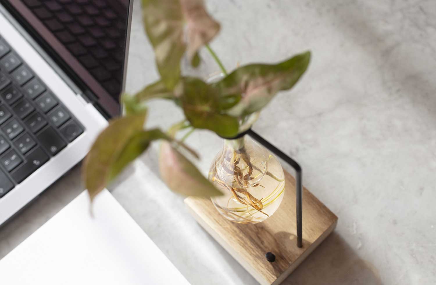 La coltivazione idroponica permette alle piante di crescere in salute e rigogliose proteggendole come se fossero in una sorta di serra. Non necessitano grandi operazioni di manutenzione, nessun rinvaso e un veloce rabbocco d’acqua all’occorrenza. Infine, le piante sono meno vulnerabili anche in condizioni di luce non ottimali rendendole ideali per chi è poco avvezzo alla cura del verde. Le proponiamo con provette in vetro trasparente con supporti in legno o ferro di design.