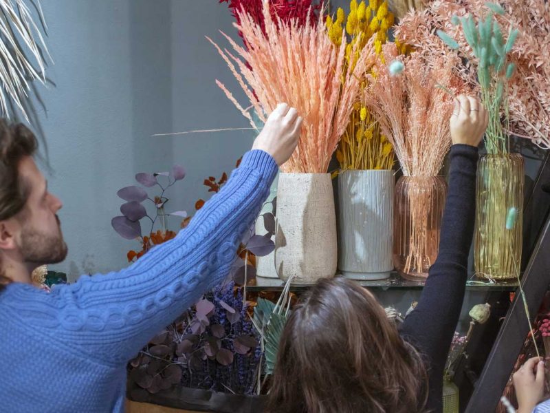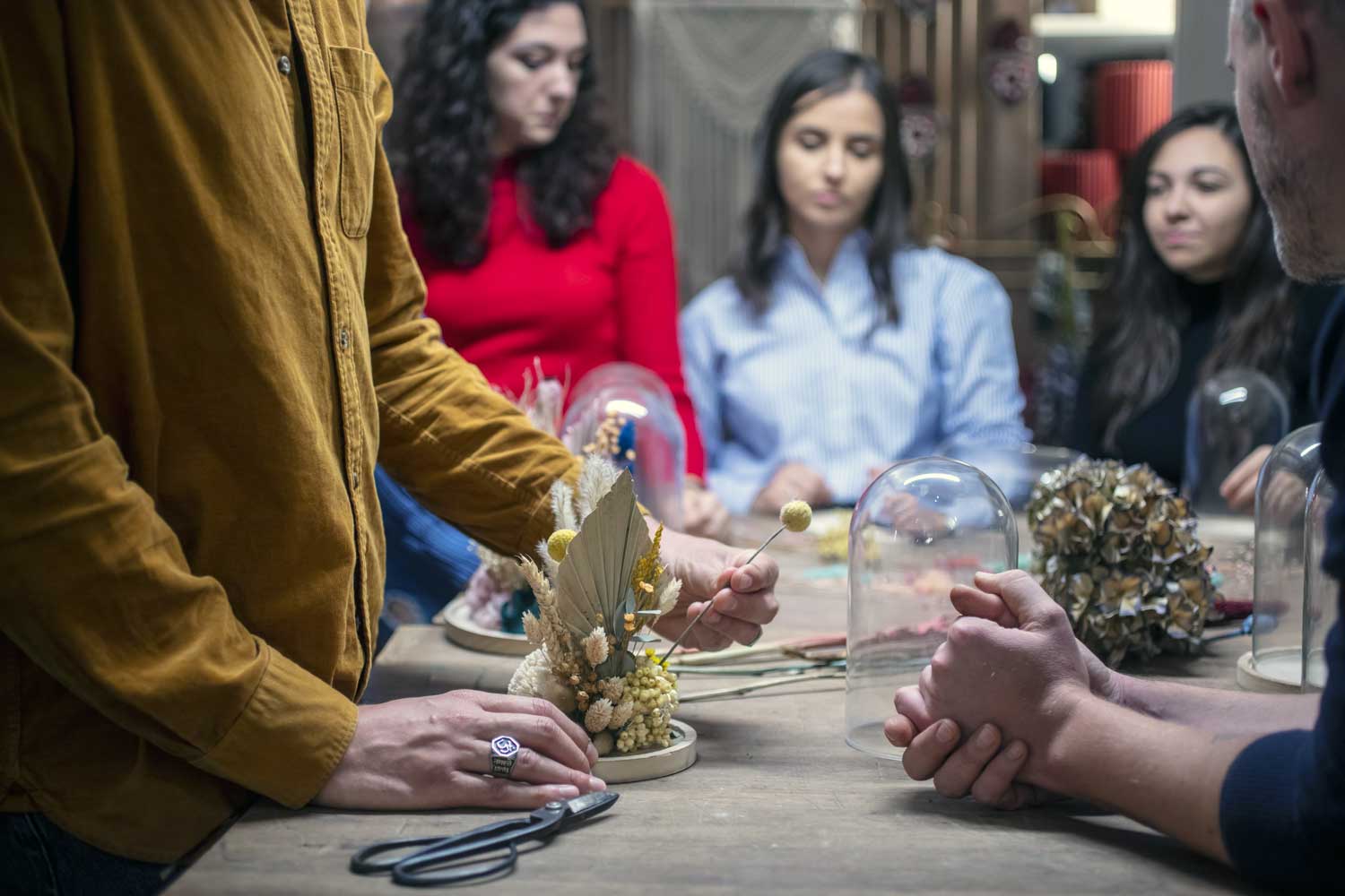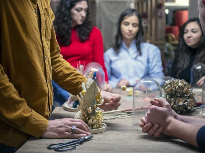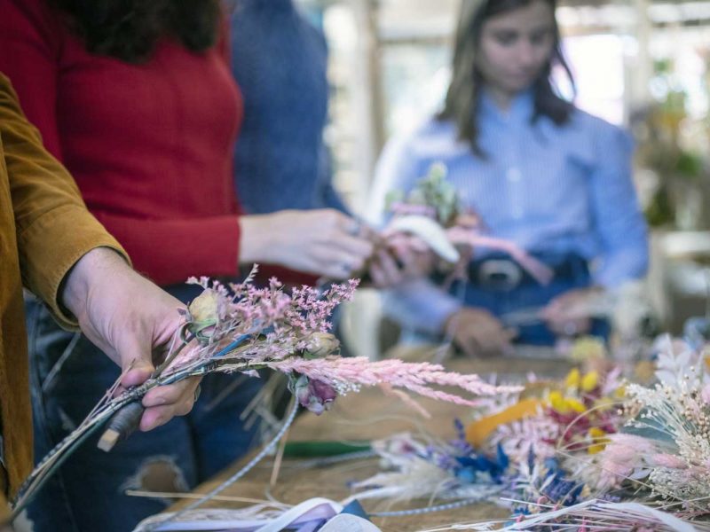 Ogni anno, da Novembre ad Aprile, organizziamo circa una ventina di appuntamenti sulla scia dei trend del momento, frutto di un’accurata ricerca che eseguiamo in fase di progettazione. Parliamo di piante e della loro cura, come bonsai, terrari e kokedama oppure ci immergiamo nelle tecniche del fiorista per realizzare bouquet, centrotavola, ghirlande e accessori floreali. Utilizziamo fiori freschi e secchi, senza dimenticare nastri e accessori. Inoltre, grazie a preziose collaborazioni con artigiani, artisti e aziende locali come cantine vinicole e agriturismi, possiamo ampliare le esperienze sensoriali dei laboratori.