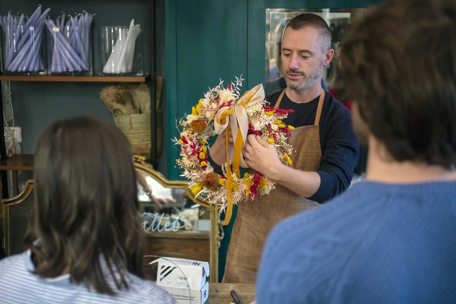 L’idea di realizzare i workshop in officina è nata da un’intuizione di mamma Lella che nel Natale del 2012 invitò le sue amiche in negozio per realizzare insieme una ghirlanda natalizia. L’esperienza piacque a tutte perché oltre a realizzare un oggetto che avrebbe poi adornato la casa per le Feste, trascorsero un bellissimo momento conviviale che restò nel cuore di tutte.